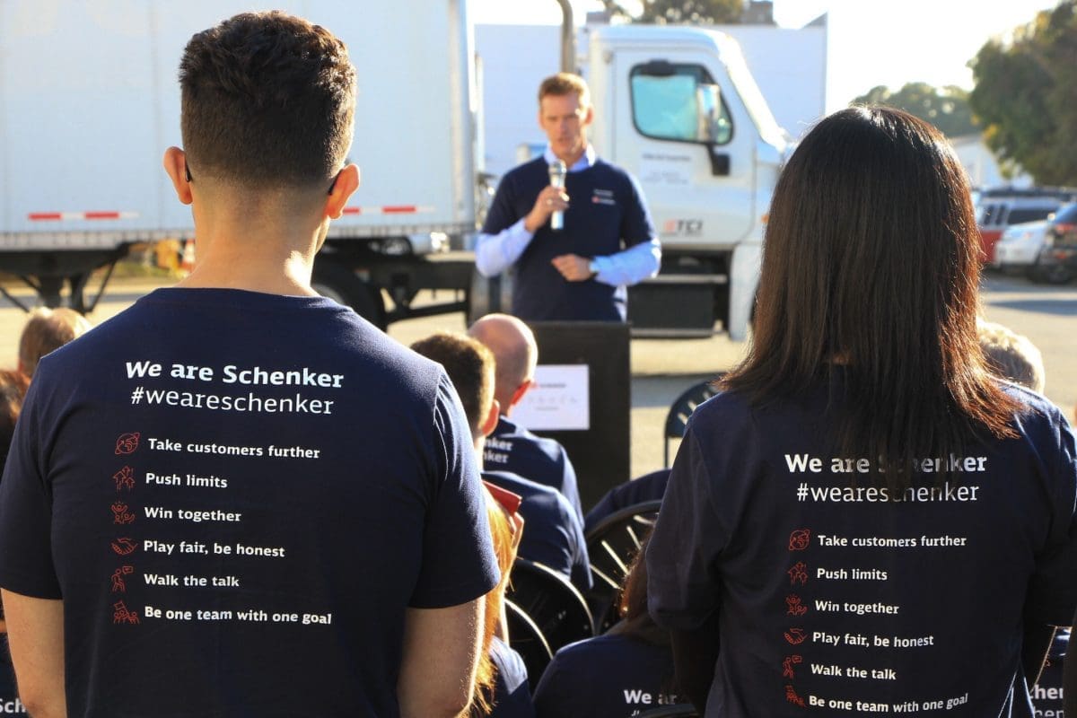 ‚We advance businesses and lives by shaping the way our world connects’. In diesem Statement dreht sich alles um den Beitrag jedes einzelnen Mitarbeiters bei DB Schenker und die entscheidende Rolle, die er bei der Führung der globalen Aktivitäten tausender Kunden einnimmt, was wiederum den Alltag von Menschen auf der ganzen Welt direkt beeinflusst. Ein Großkunde ist beispielweise darauf angewiesen, dass hunderte, weltweit tätige DB Schenker-Mitarbeiter seine Produkte rund um den Globus, in den Einzelhandel und zu den Kunden nach Hause transportieren.